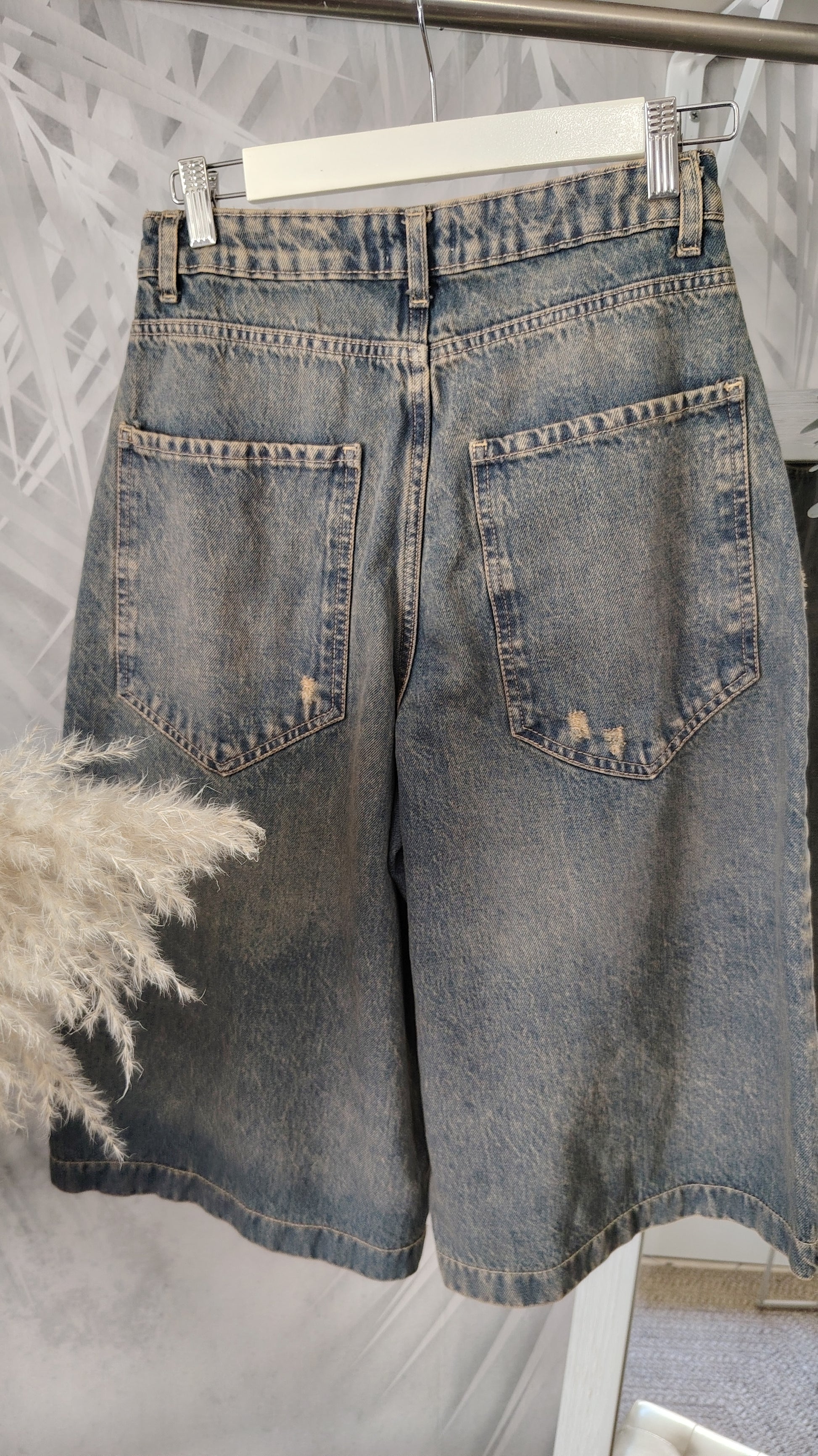 Bermuda jeans, 100% cotone, cinque tasche , lavaggio sabbiato , sdrucito