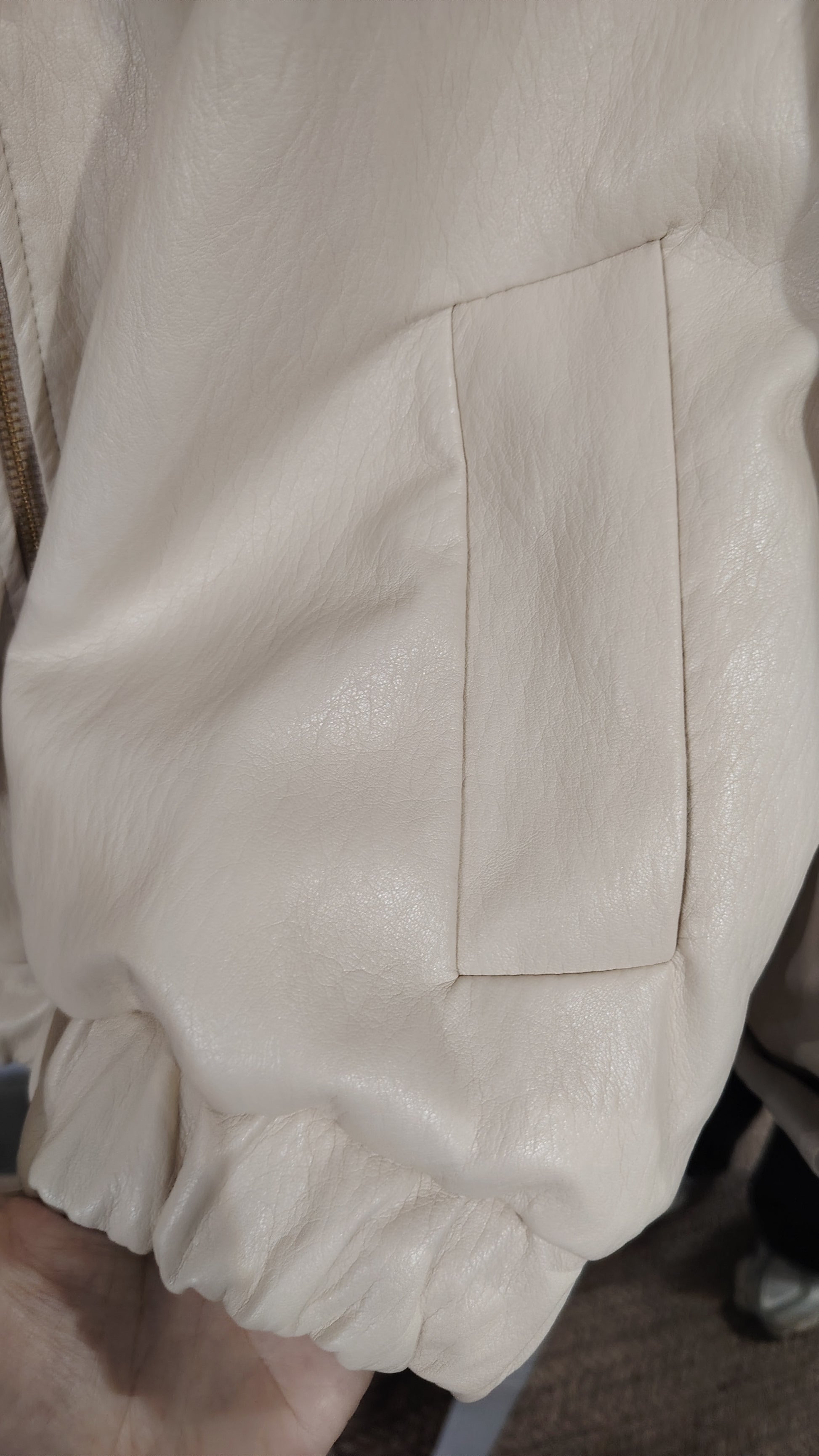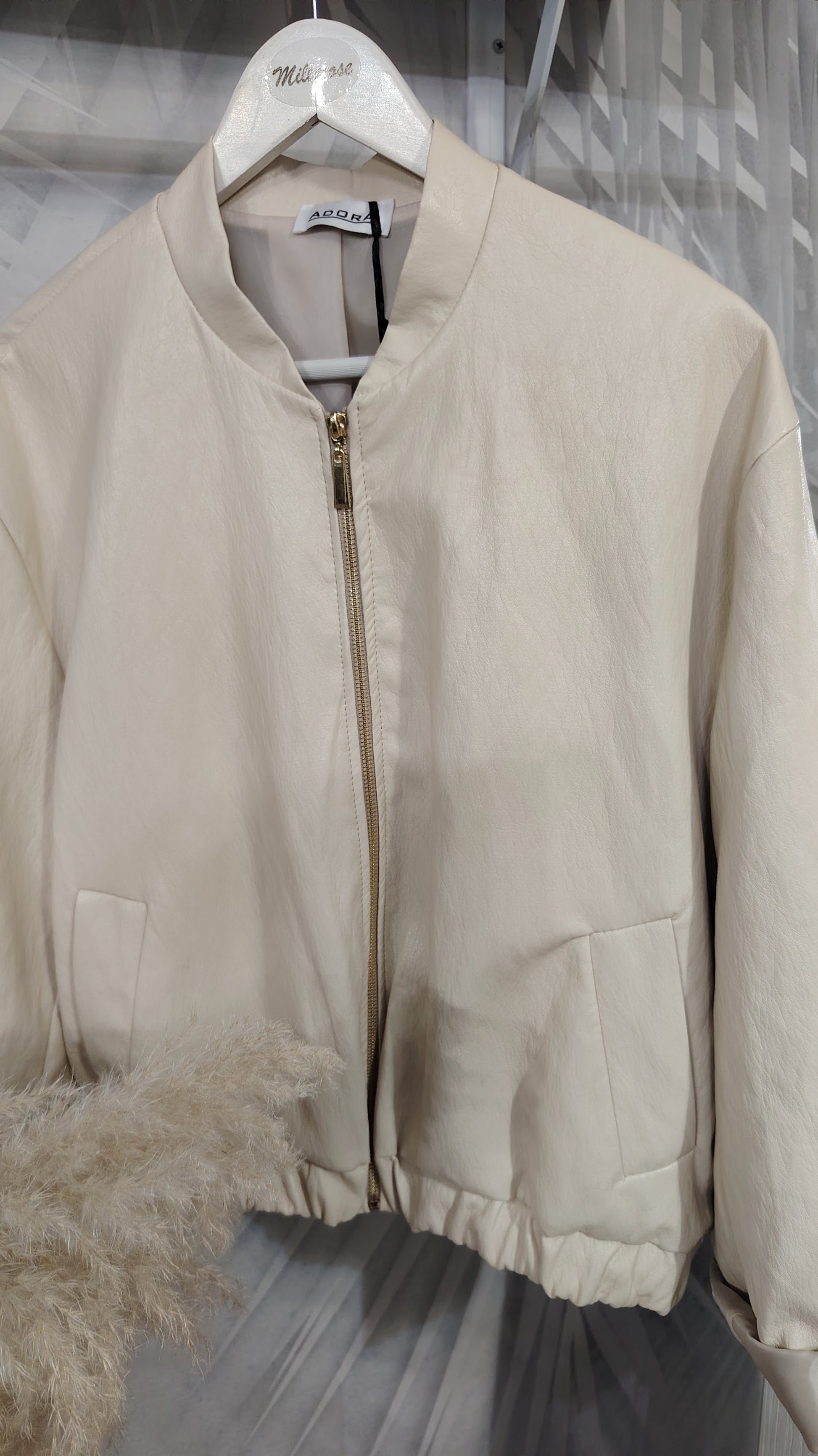 Bomber in ecopelle foderato, cerniera colore oro , tasche laterali, manica larga sul fondo