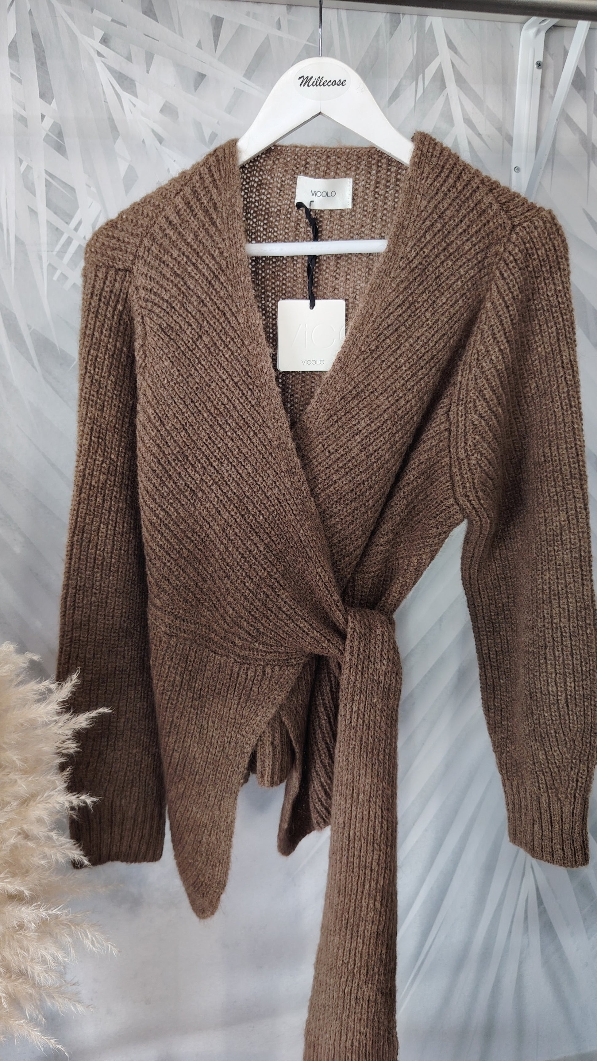 Cardigan costa inglese, allacciato sul fianco , misto lana
