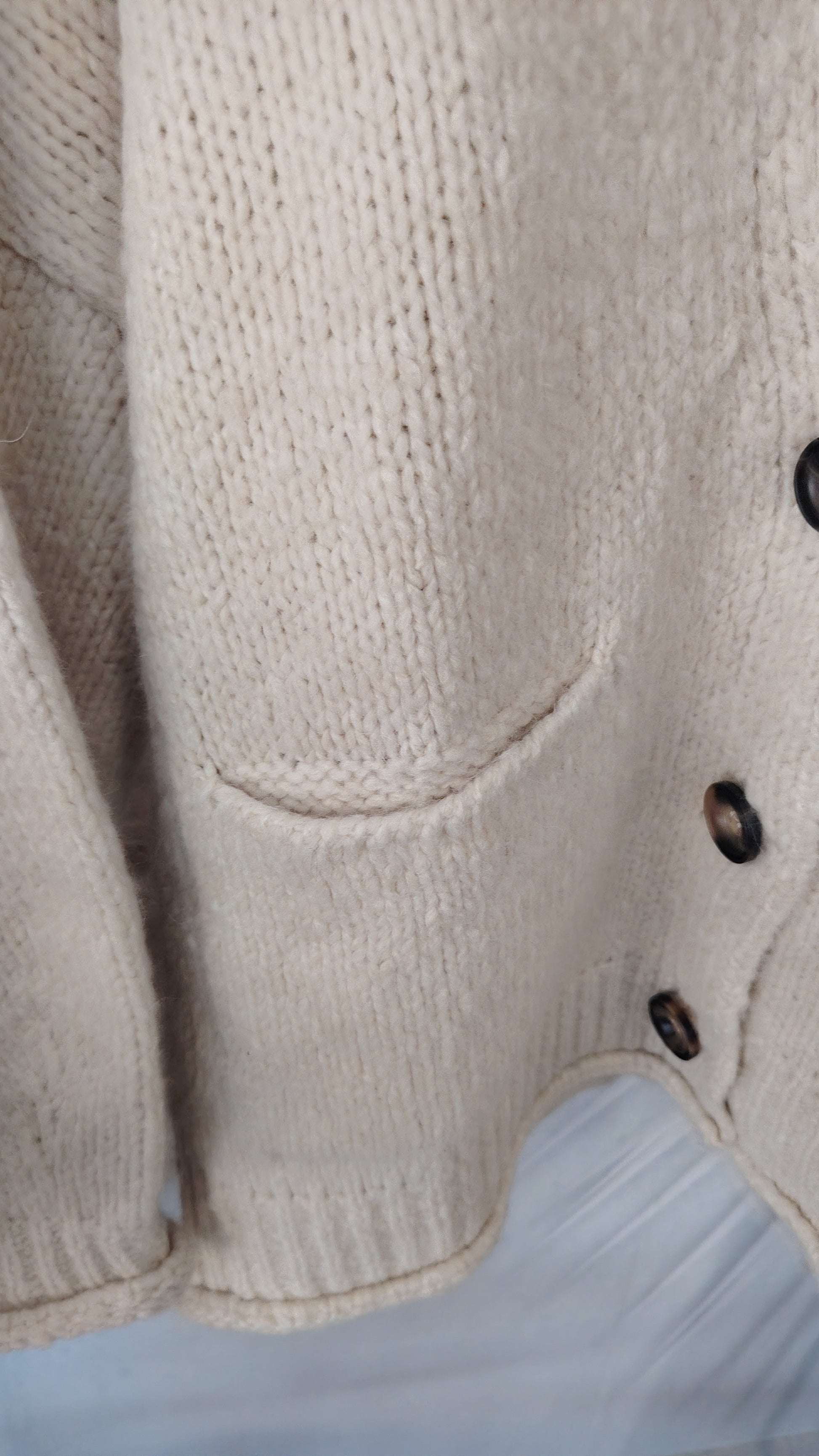 Cardigan lana alpaca , tre bottoni , tasche , scollo a V , vestibilità comoda