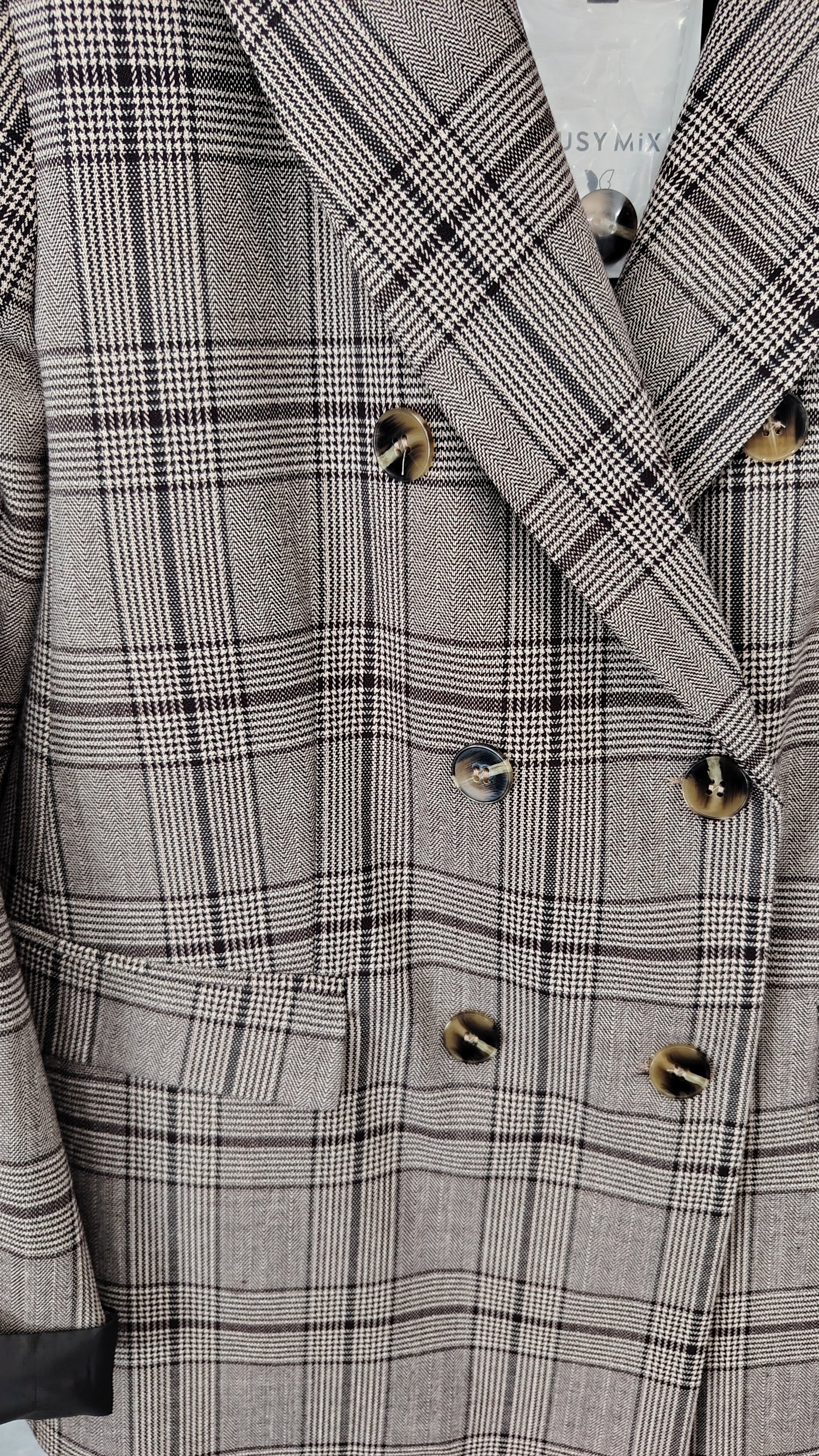 Giacca doppiopetto principe di galles, pattine sulle tasche, vestibilità regolare