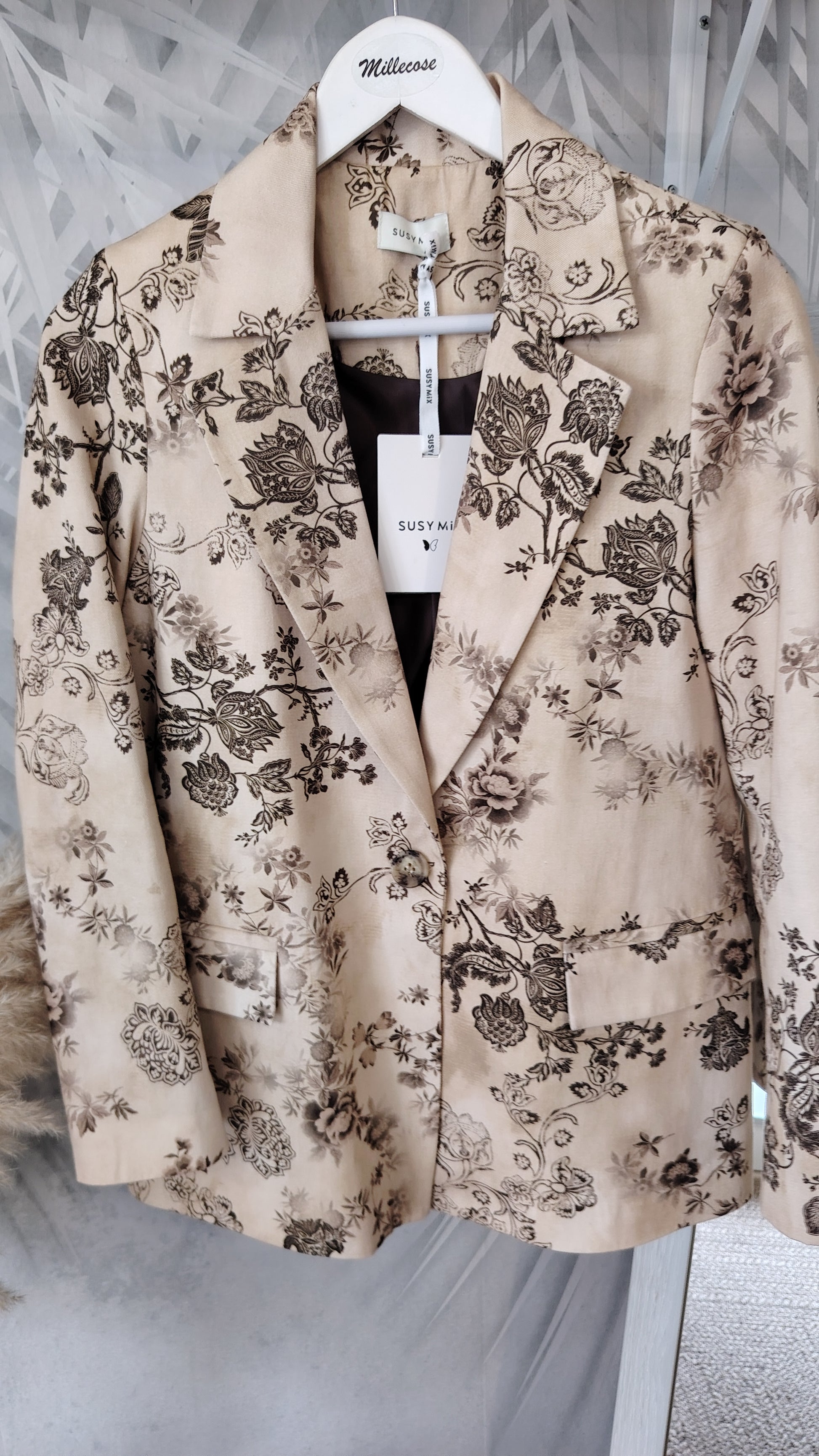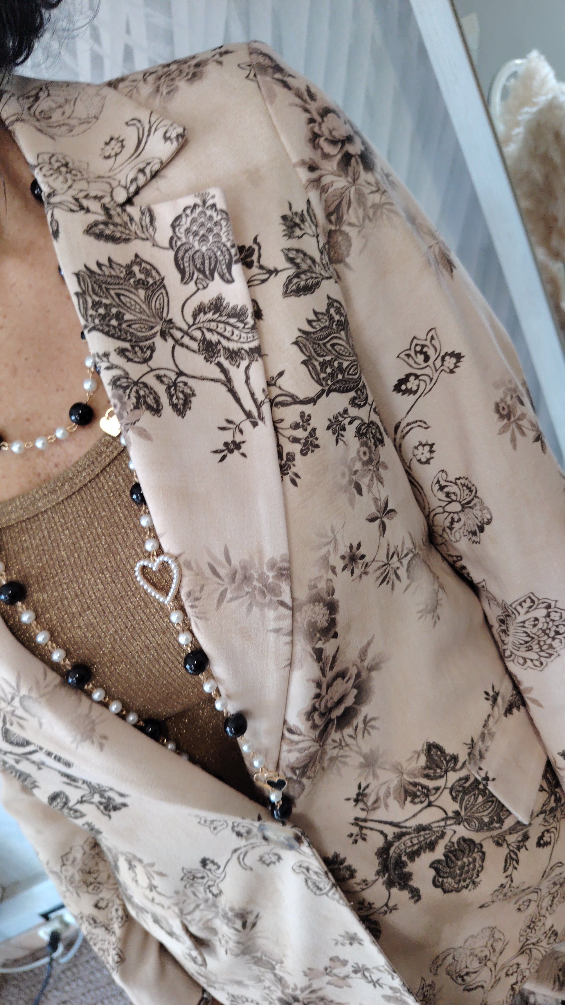 Giacca in Fantasia con Rever Classico e Tasche a Filetto con Pattina.
