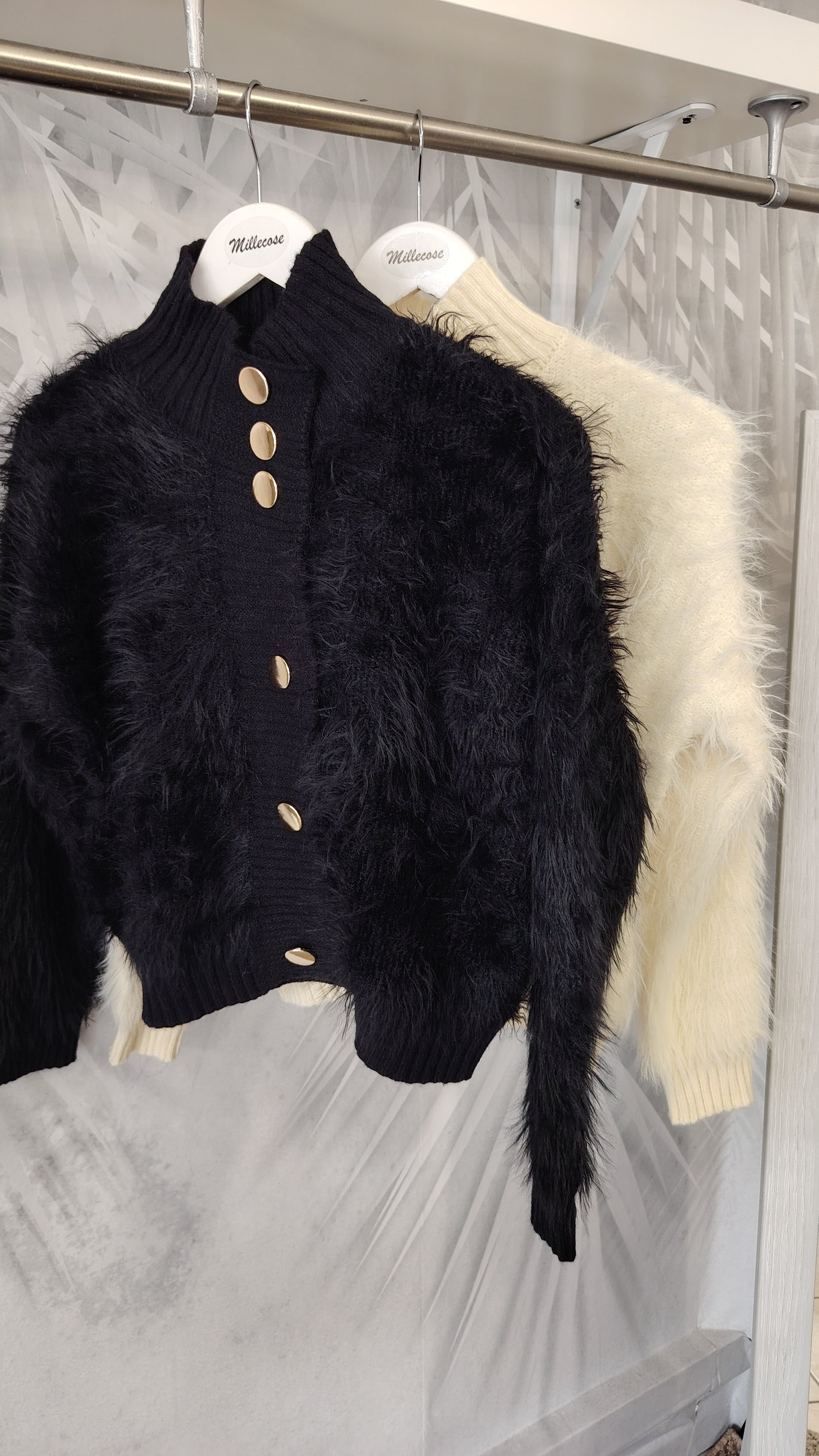 Giacchino con bottoni oro, bordi a costine alti , filato pelosino
