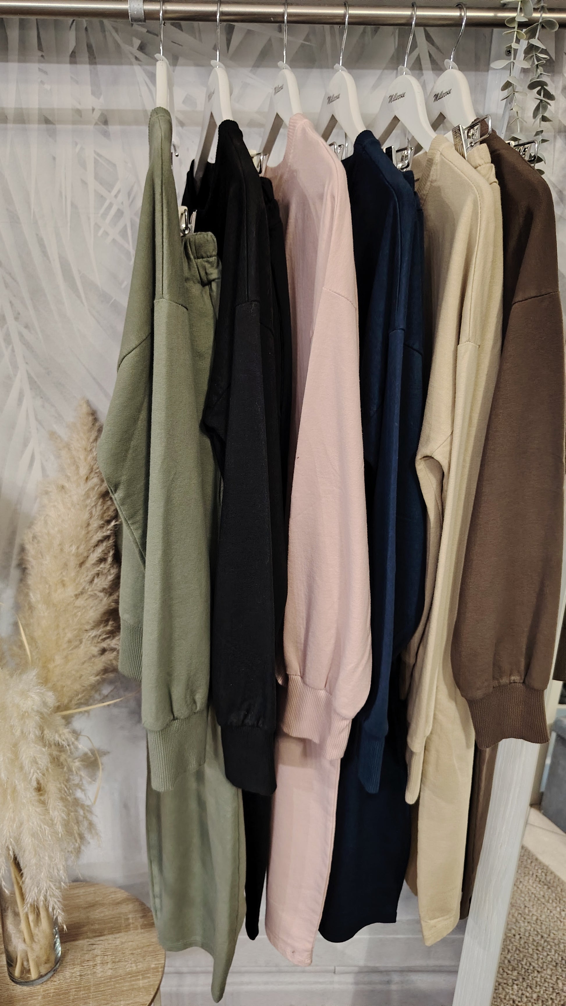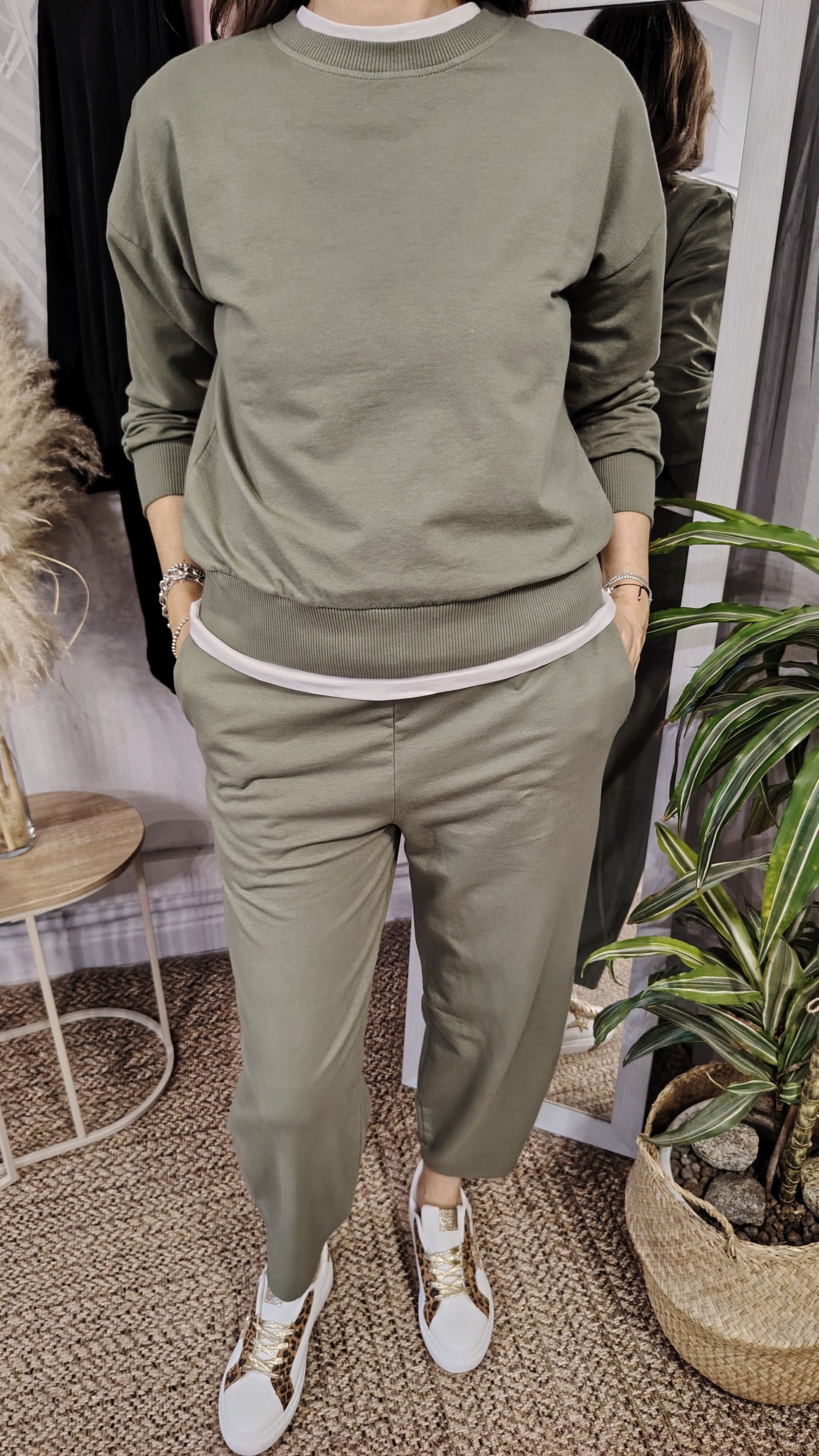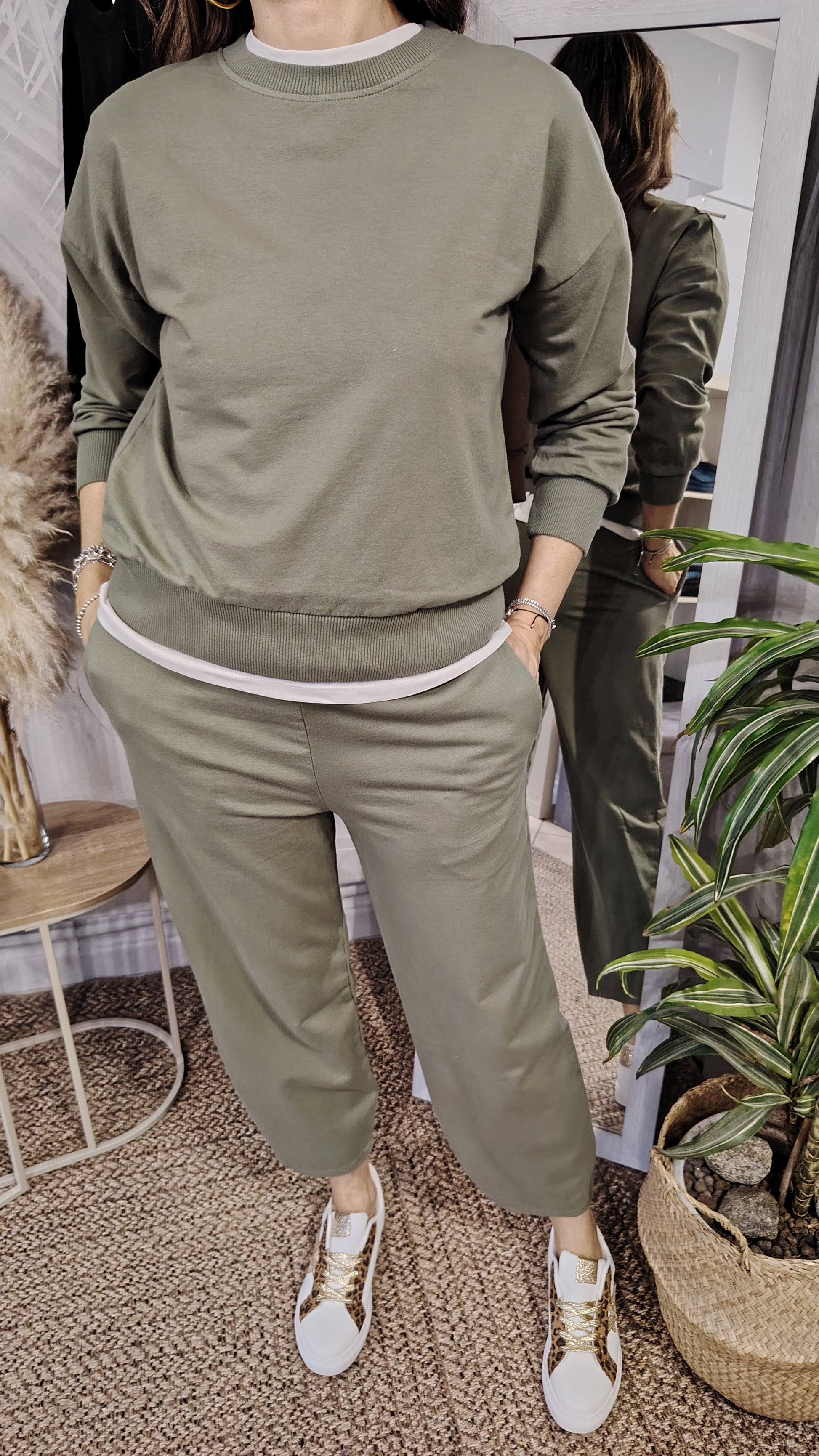Completo in felpa con pantalone ad ovetto e felpa girocollo