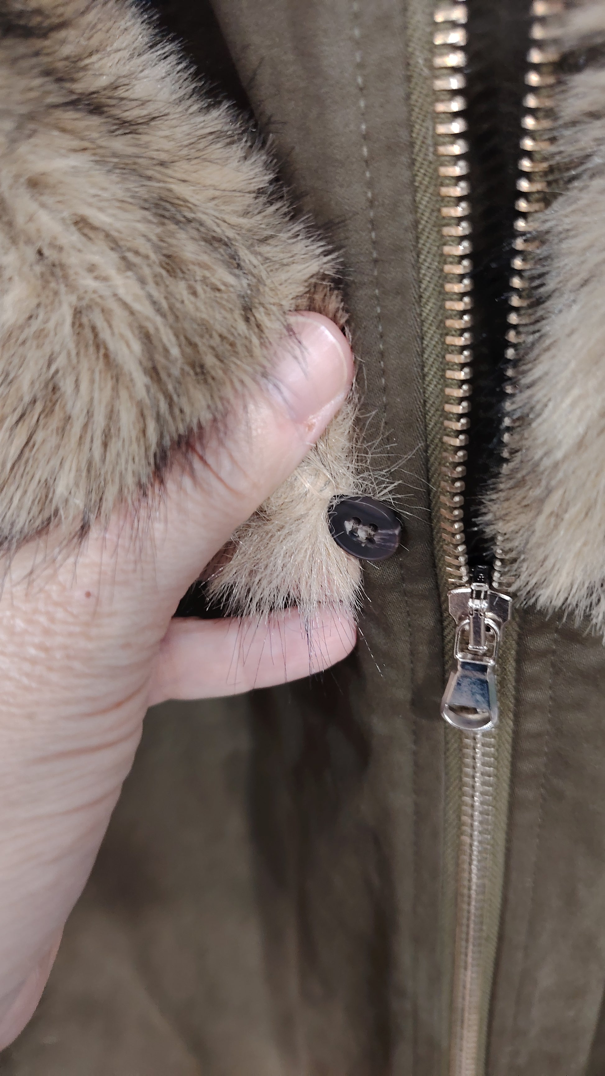 Maxi bomber in cotone , collo in ecopelliccia rimovibile, imbottitura interno, tasche , cerniera e bordi a costine