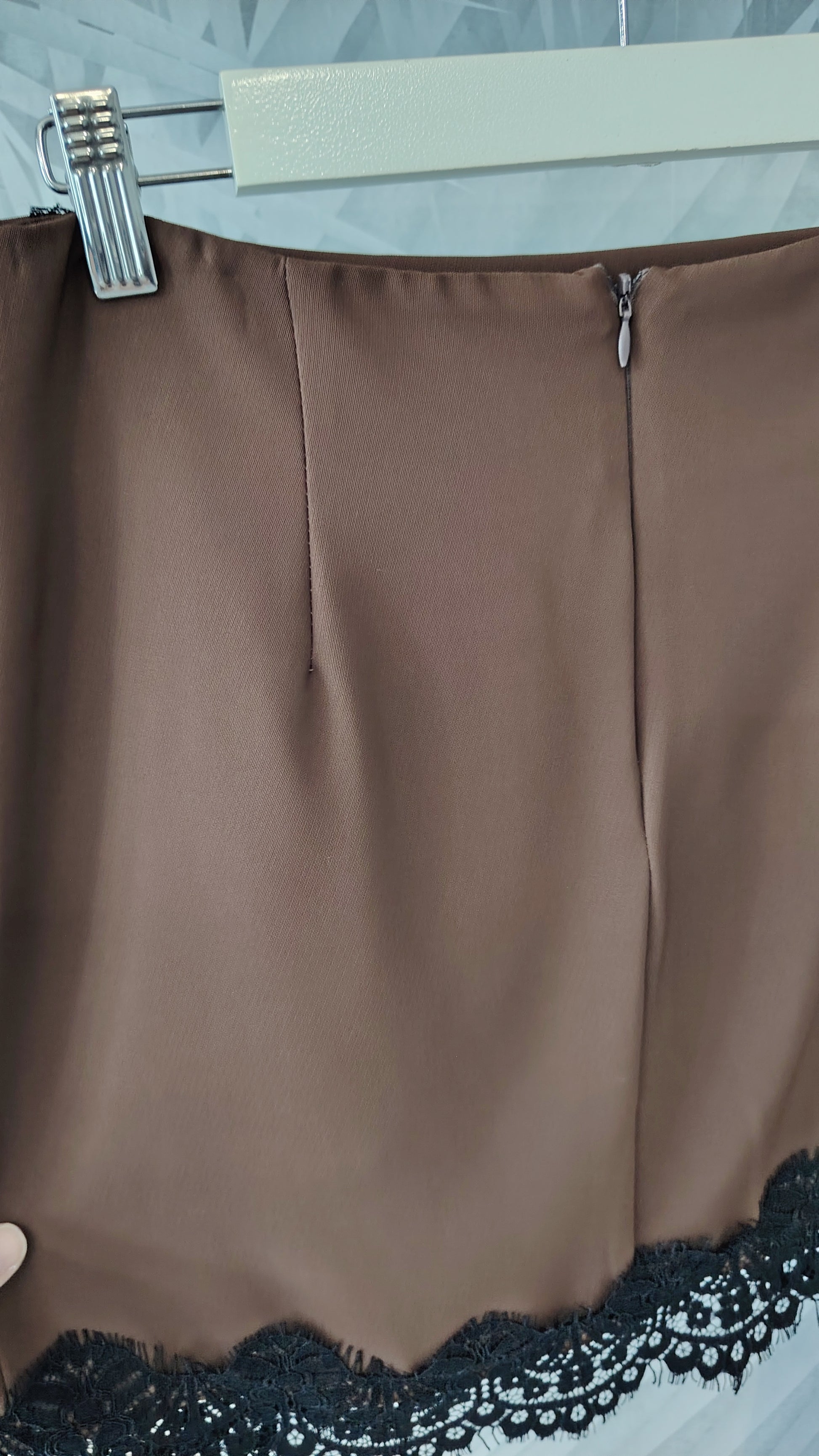Minigonna in crepe con rifinitura in pizzo in contrasto di colore, cerniera posteriore , vestibilità regolare