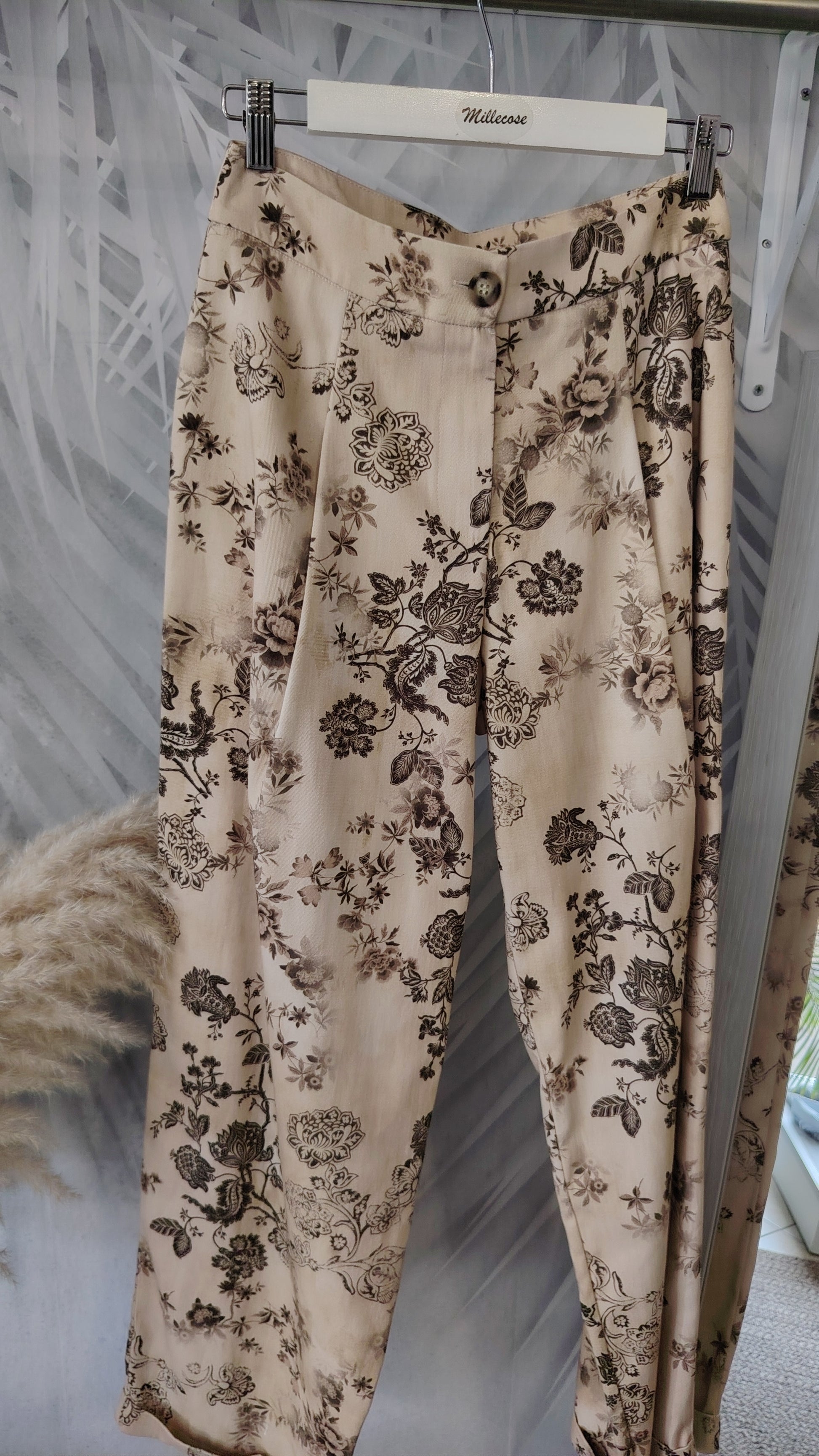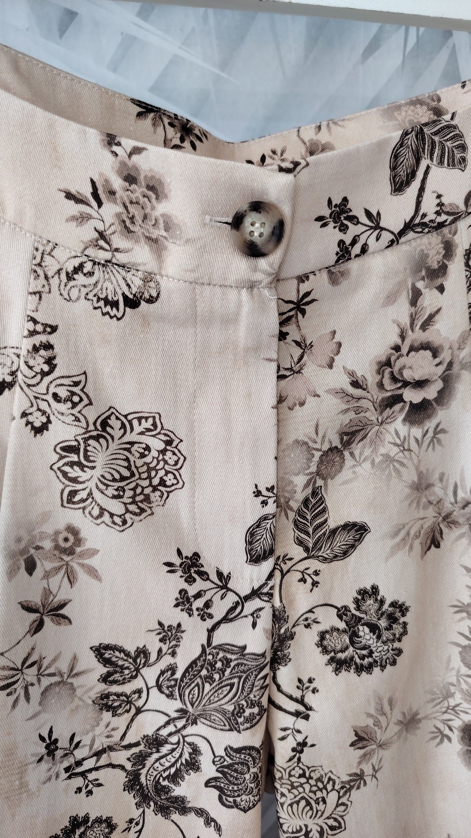 Pantaloni Dritti in Fantasia con Pences e Tasche Oblique.