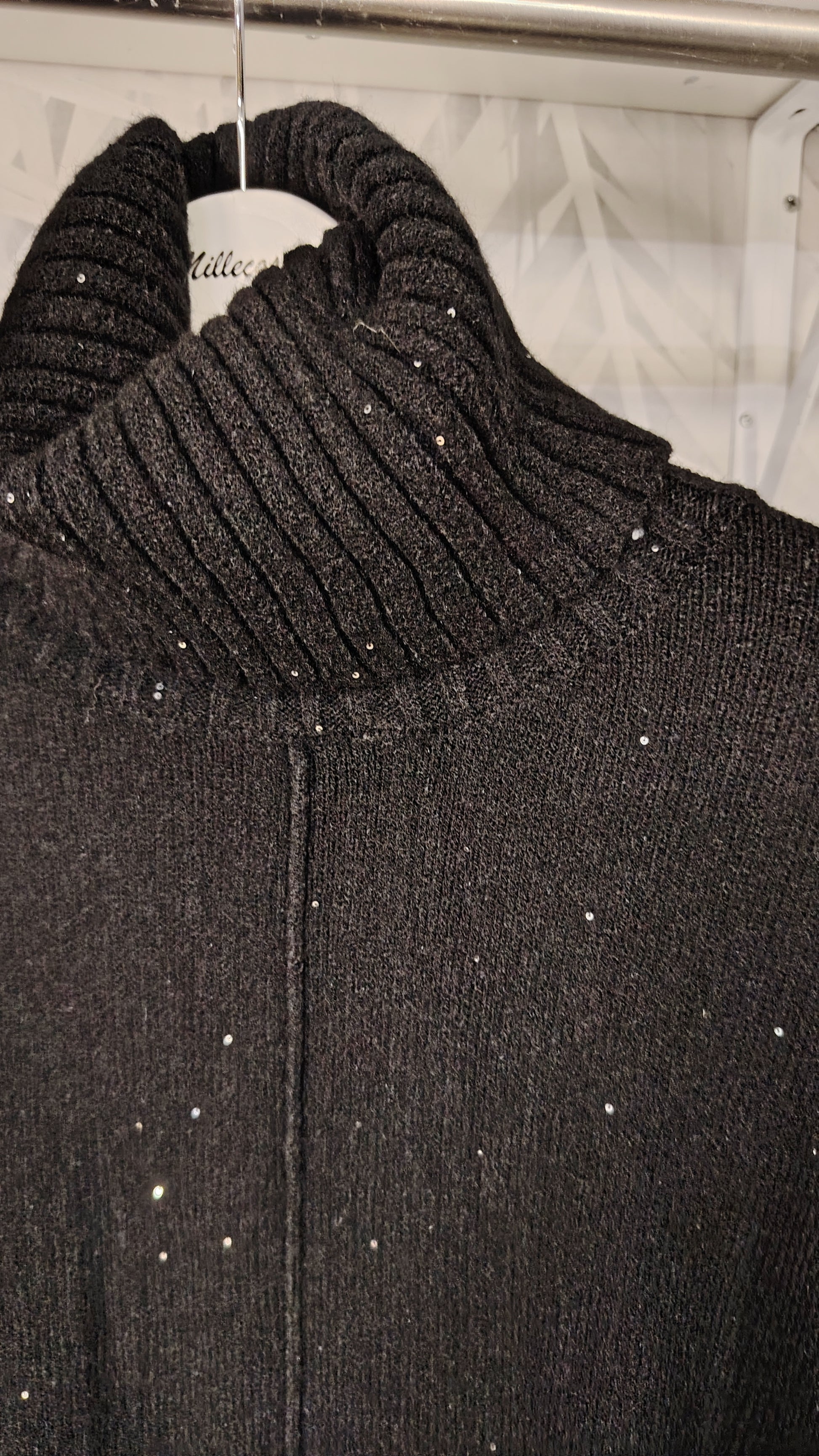 Pull con collo a ciambella, vestibilità over , bordi e polsi a costine, filato con micropaiette