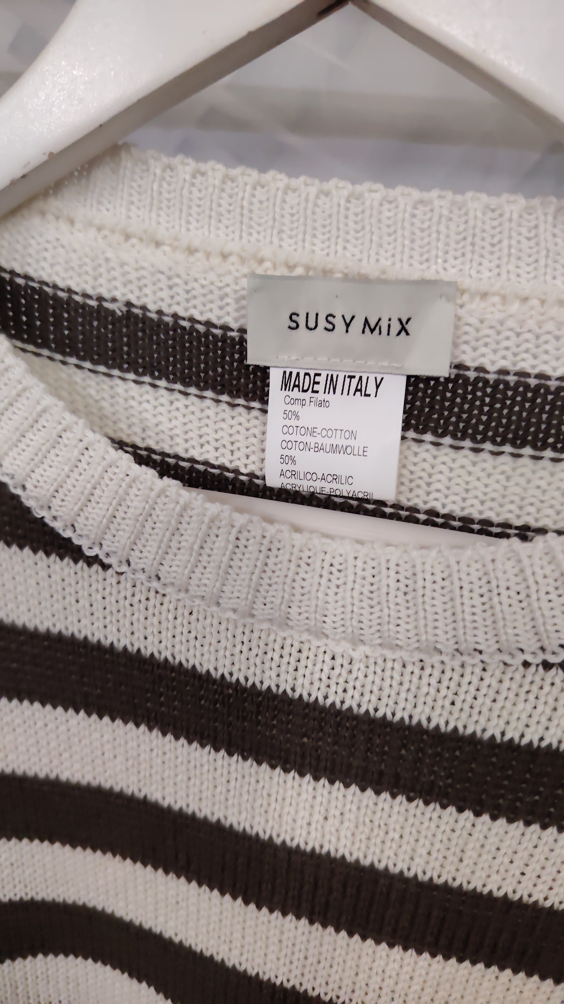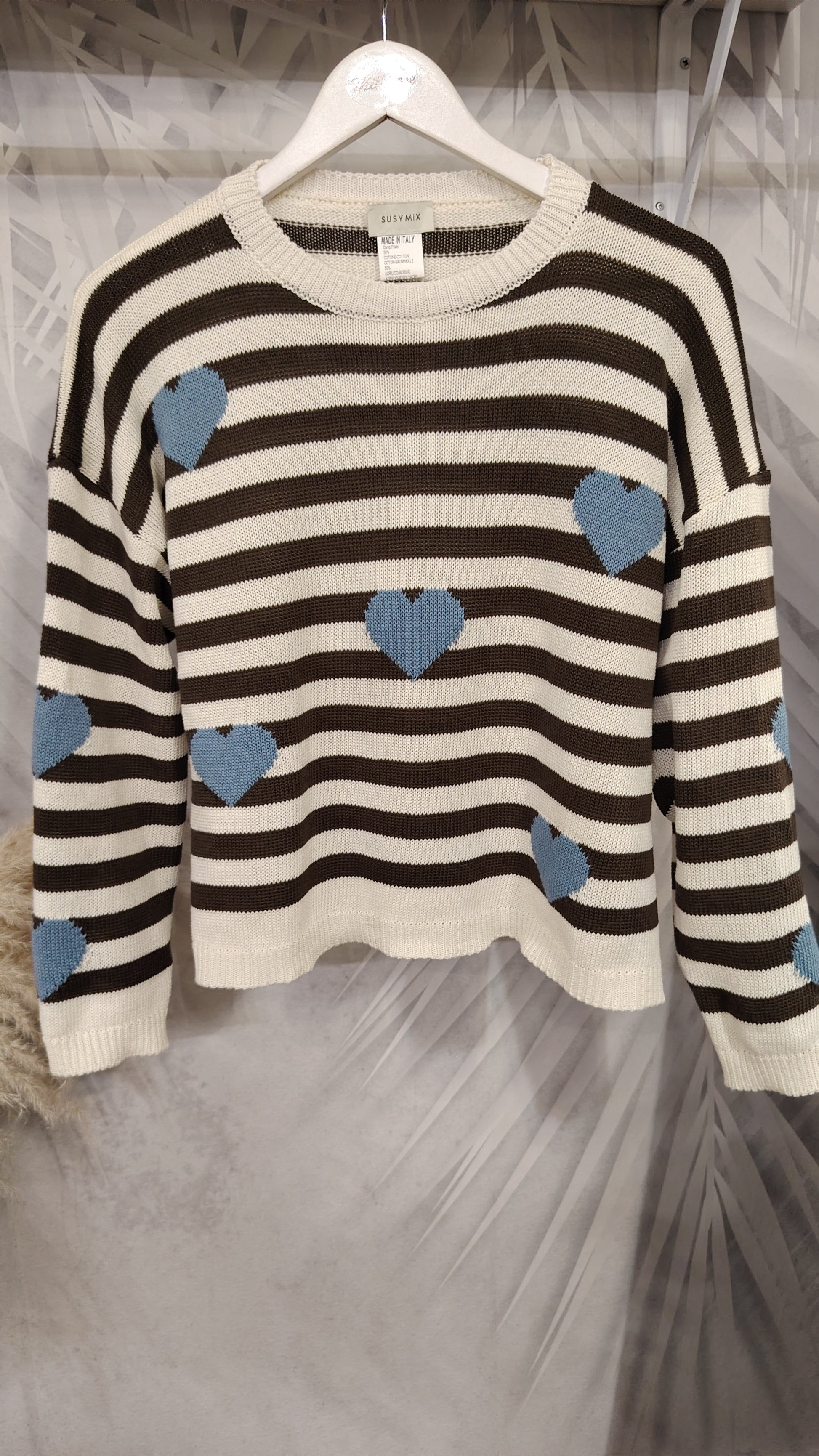 Pull in cotone girocollo righe e cuori