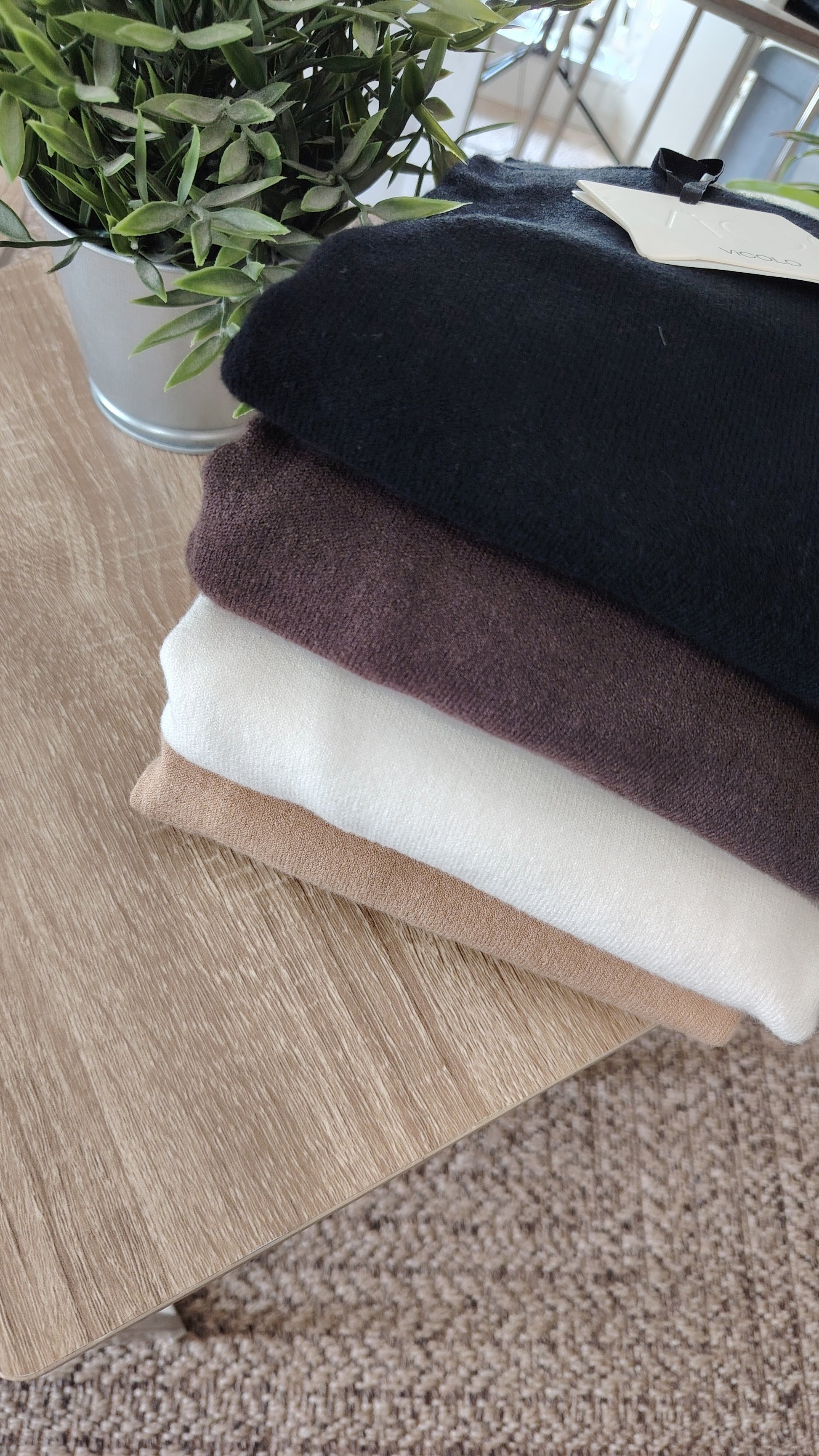 Pulla scatolina , girocollo, viscosa vestibilità comoda , bordo a costina , polsini dritti