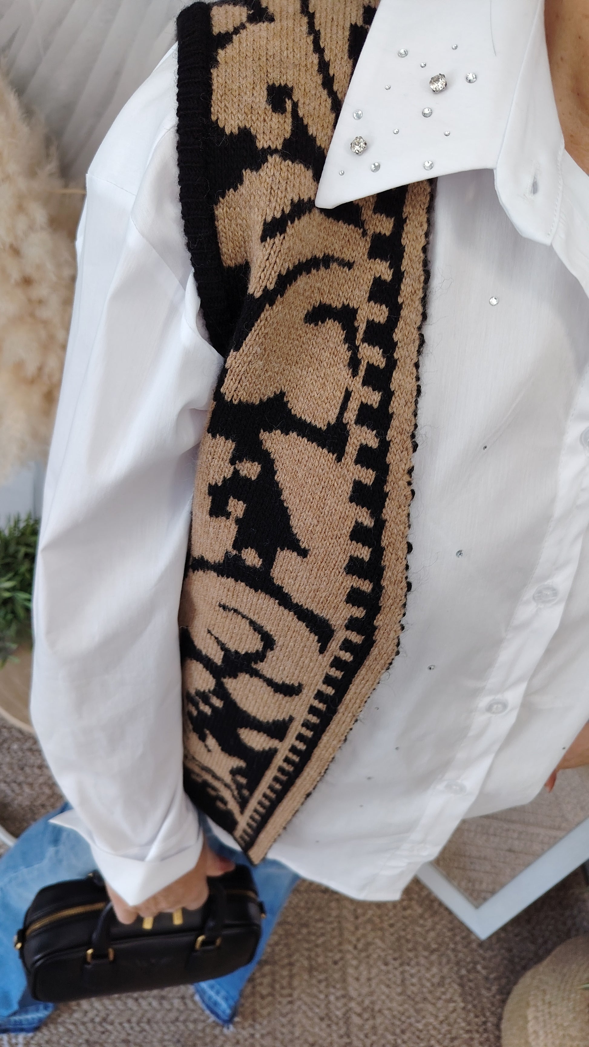 Gilet jacquard , modello senza chiusura , misto lana , punto tessuto
